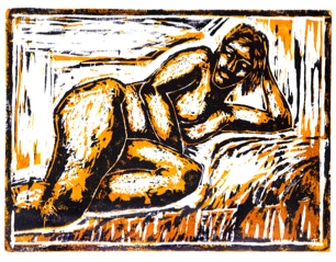 Chris Derksen was een veelzijdig kunstenaar. Naast beeldhouwer en schilder was hij ook graficus. In zijn hout-snedes gebruikte hij daarvoor vooral hout dat al een leven achter de rug heeft, zoals oude vloerplanken, of planken met spijkergaten en zaag -sneden. Hier zien we wederom een overeenkomst met zijn beeldhouwkunst. "Soms ben ik verbaasd dat de littekens van het oude hout zo'n mooie toevoeging zijn aan de druk.• Derksen koos voor zijn houtsneden vooral naakten tot onderwerp. En daarbij ging het om de lichaamshouding. Eens in de maand ging hij modeltekenen bij een kunstkring in Lommel.